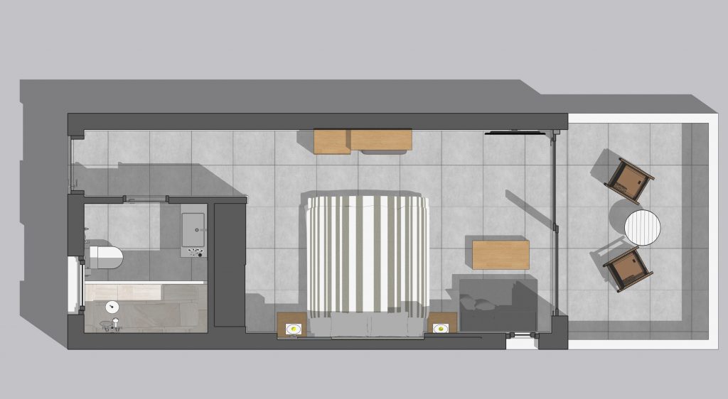 With a magnificent Side Sea view is located next to the Cretan Sea, it’s approximately 22-25m2, fully renovated with modern design. Consists of a twin or double bed and a sitting corner with a sofa that can be used as a bed for the third person. Our big bathroom with cabin shower and extra amenities such as hairdryer, magnifying mirror and shampoo will impress you. It is fully air conditioned with individual control, Satellite TV with international and music channels, direct dial telephone, fringe and safe deposit box. All Superior Double room has terrace or balcony and is located in the last complex of bungalows before the Cretan Sea.